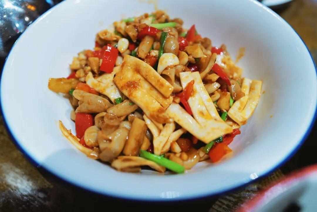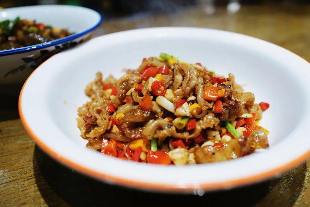 這道黃喉炒魚肚也是下飯下酒的神菜,兩種脆脆的食材一起爆炒,裹滿醬汁,辣而爽脆。