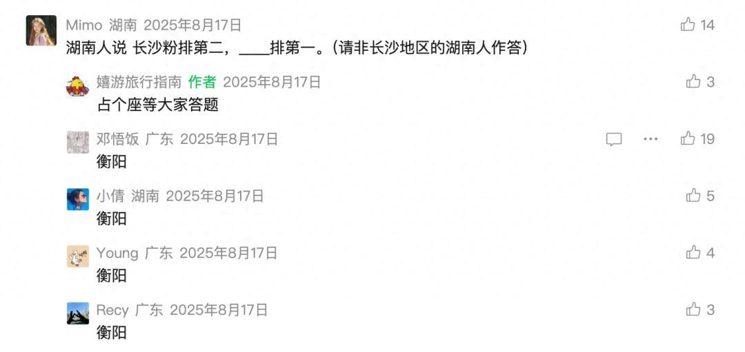 之前發了長沙嗦粉攻略「鏈接」,評論區裏大家開始排隊完形填空,有種送「心動粉城」出道的架勢。