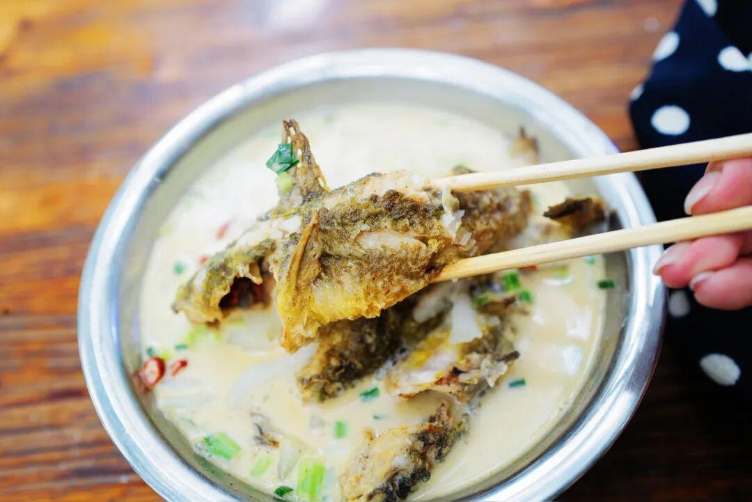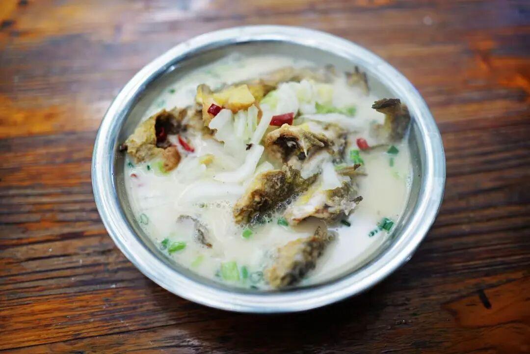 點了黃沙古粉,18元,一份有三條魚哦,這個價格真的便宜。黃沙古就是黃辣丁、汪刺魚,可憐的魚兒是當着我的面嚥氣的,喫得就是一個新鮮。