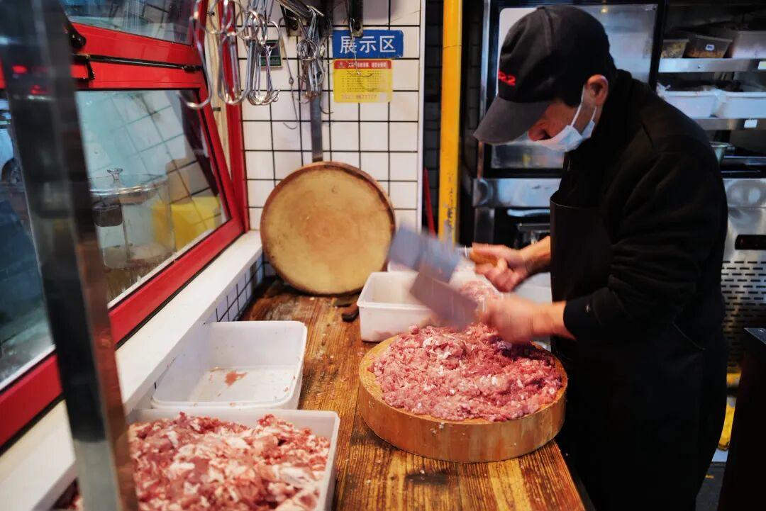 一進門就看見正在剁肉,他們家碎肉粉的臊子是手工現切的肉末,不用絞肉機,所以肉粒有質感、有嚼勁。