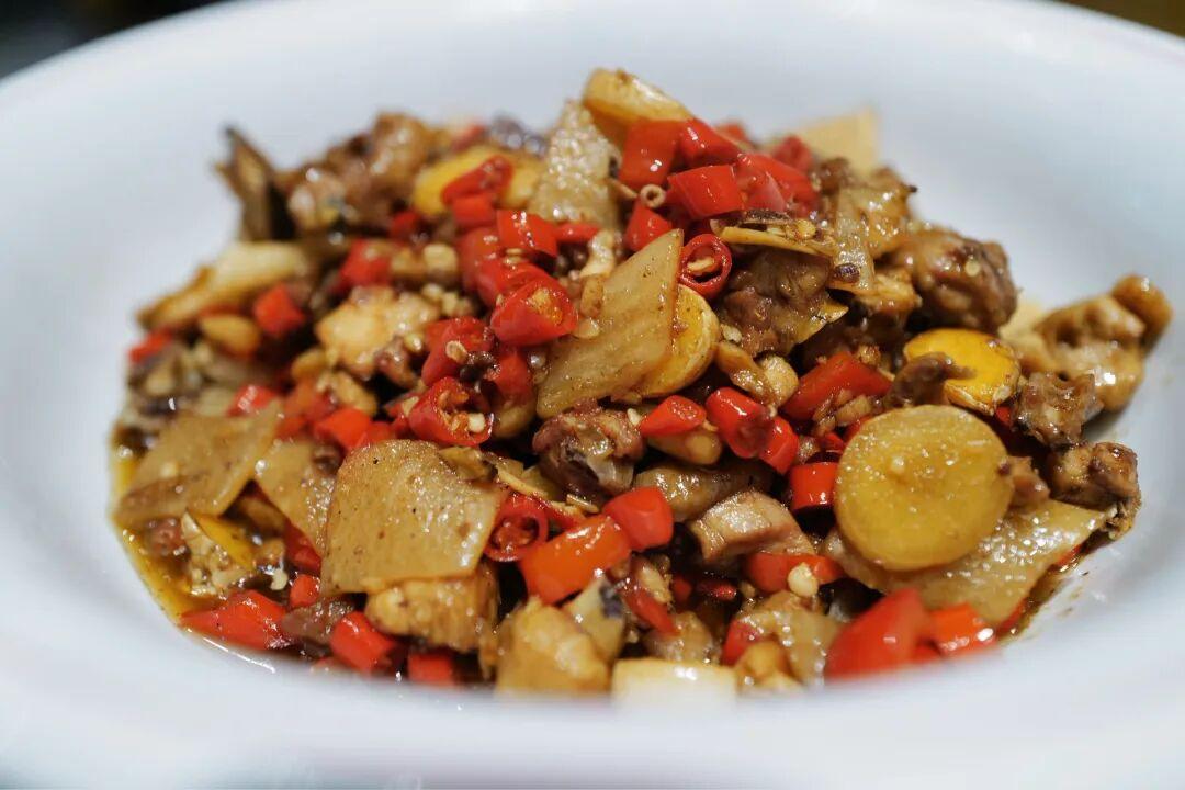 選的是散養的走地雞,喫起來會更有嚼勁,肉質緊實彈牙,雞有雞味。大火爆炒很有鍋氣,茶油香氣滲入每塊肉裏,又香又辣很上頭。