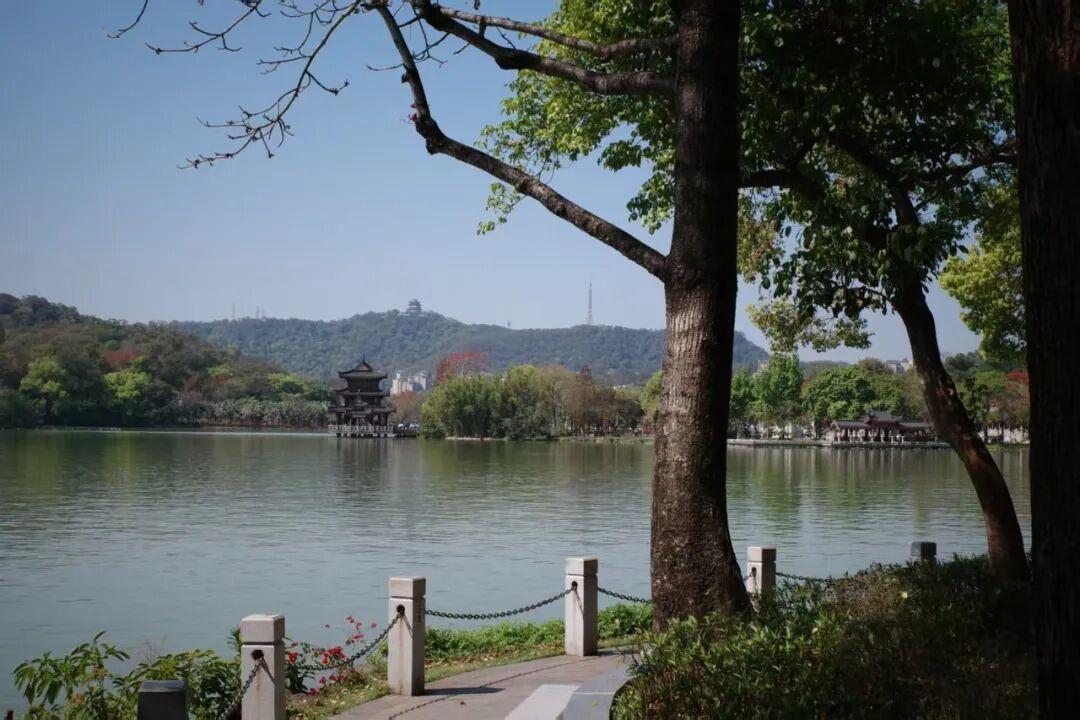 在這裏可以打卡祝枝山館,也可以沿着濱水休閒長廊漫步,看西湖的湖光山色;鑽進一家咖啡館發呆,或是去文創工坊體驗手作也都很愜意。