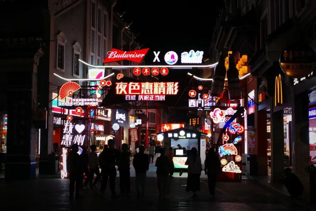 這是一條有着數百年曆史的老街,騎樓林立,是惠州傳統的商業街區。入夜之後,這裏就變成了熱鬧的夜市,小喫攤、飲品店、文創攤位一字排開。