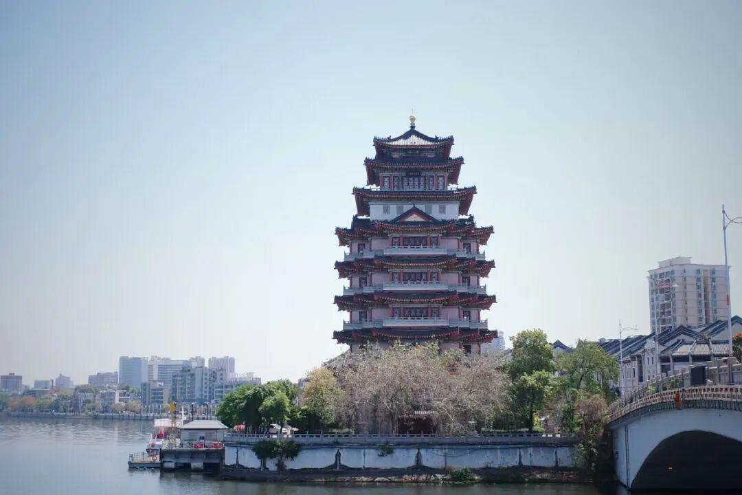 泗洲塔則是西湖的地標,八角七層的古塔,傍晚亮燈之後特別好看。想拍塔影倒映的照片,走到對面的點翠洲,那裏是最佳機位。