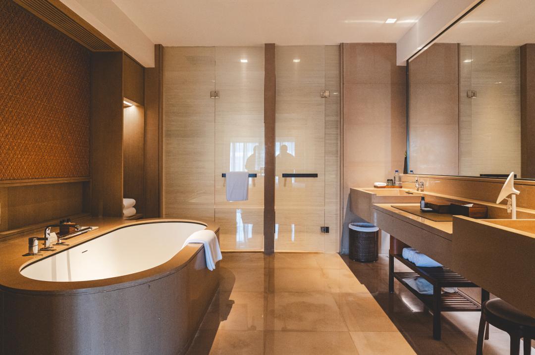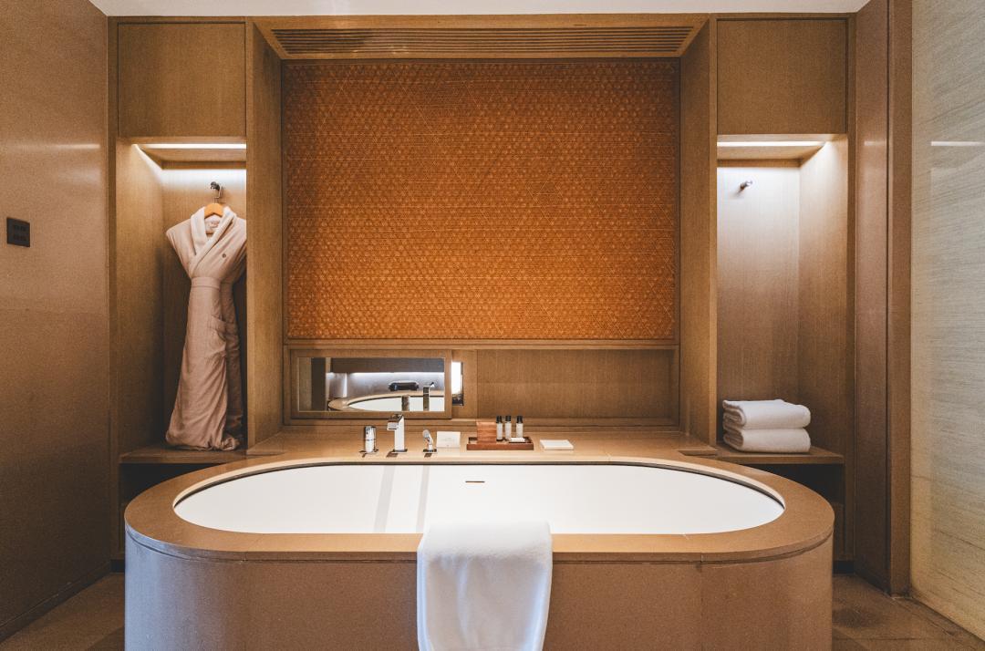 牆上沒有掛畫,因爲窗外就是風景;牀頭沒有複雜的軟包,因爲會影響睡眠;浴室裏也沒有炫目的燈光,因爲泡澡的時候應該放鬆。