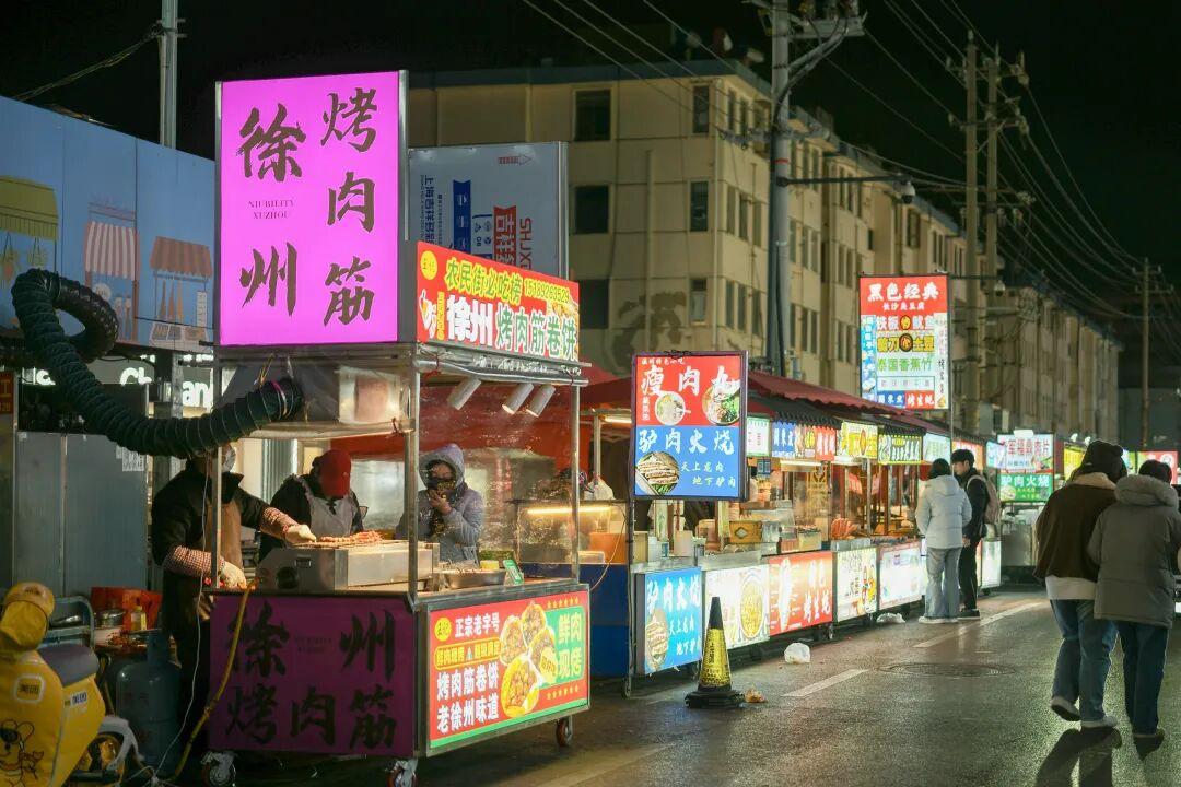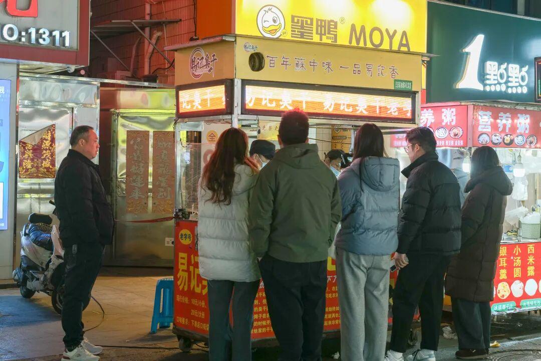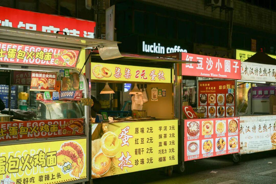 這裏彙集了來自全國各地及本地老字號風味,以燒烤、炒螺螄、雞蛋餅、臭豆腐等特色小喫最爲出名。暖黃色的燈光暈染整條街道,空氣中炸串的油香、烤肉的孜然香、糖水的甜香層層疊疊交織,勾得人肚裏饞蟲蠢蠢欲動。