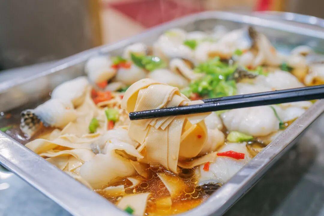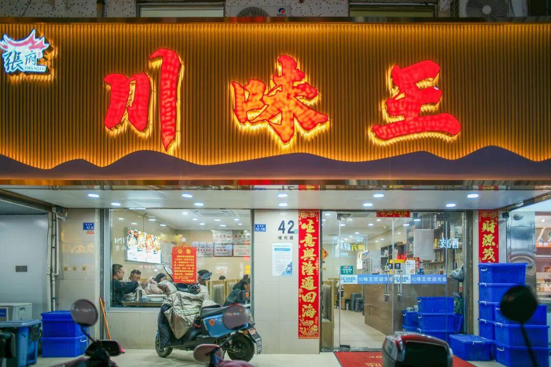 除了小喫攤,這條街上的餐館也是久經考驗的。這家川味王就被朋友推薦了很多回,人氣確實很旺。招牌青花椒水煮魚麻辣鮮香,裏面的配菜和嫩滑的魚肉相比也是不遑多讓,千張絲軟嫩,韭菜葉甜香。