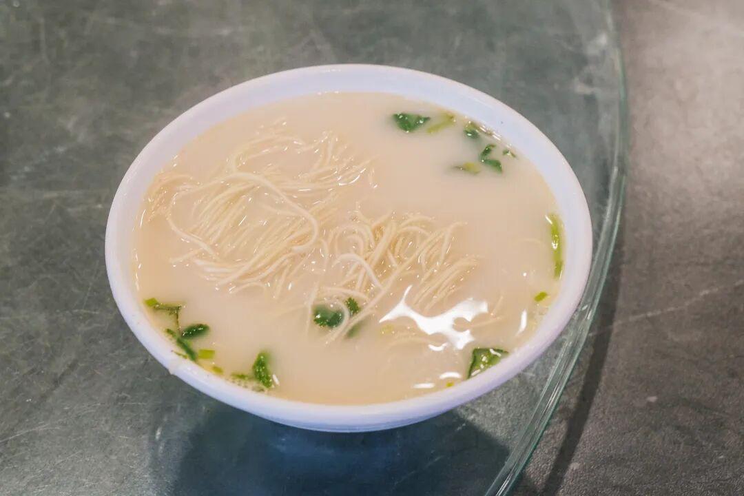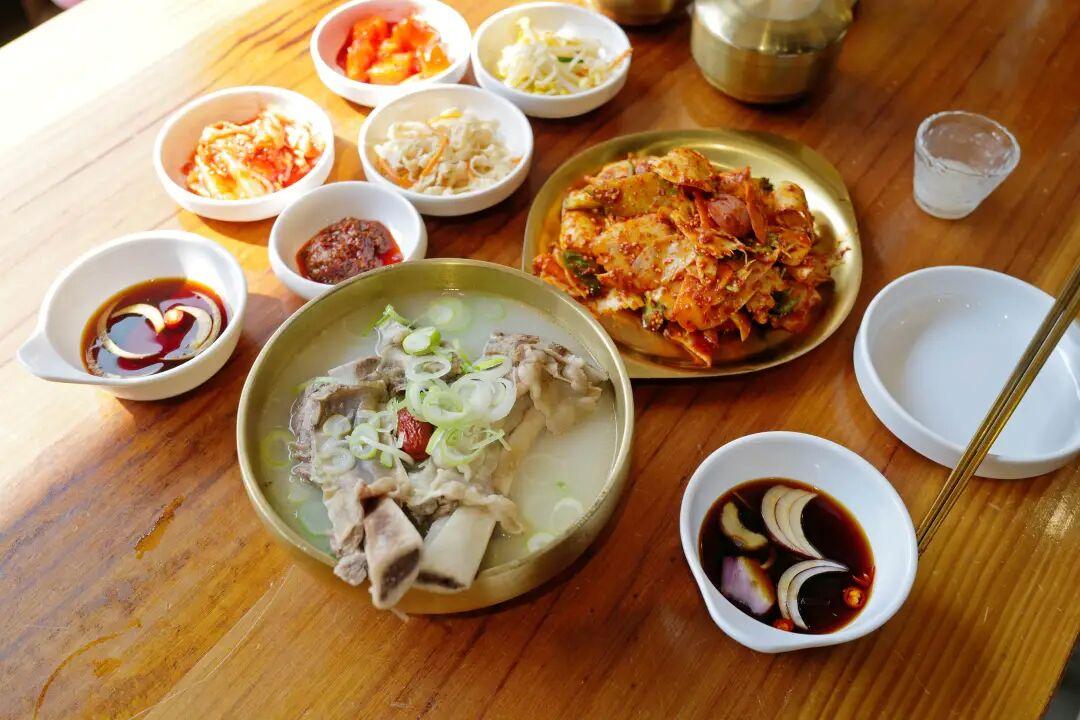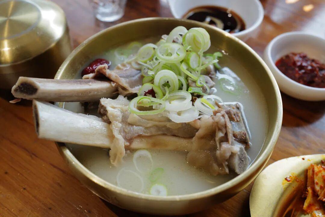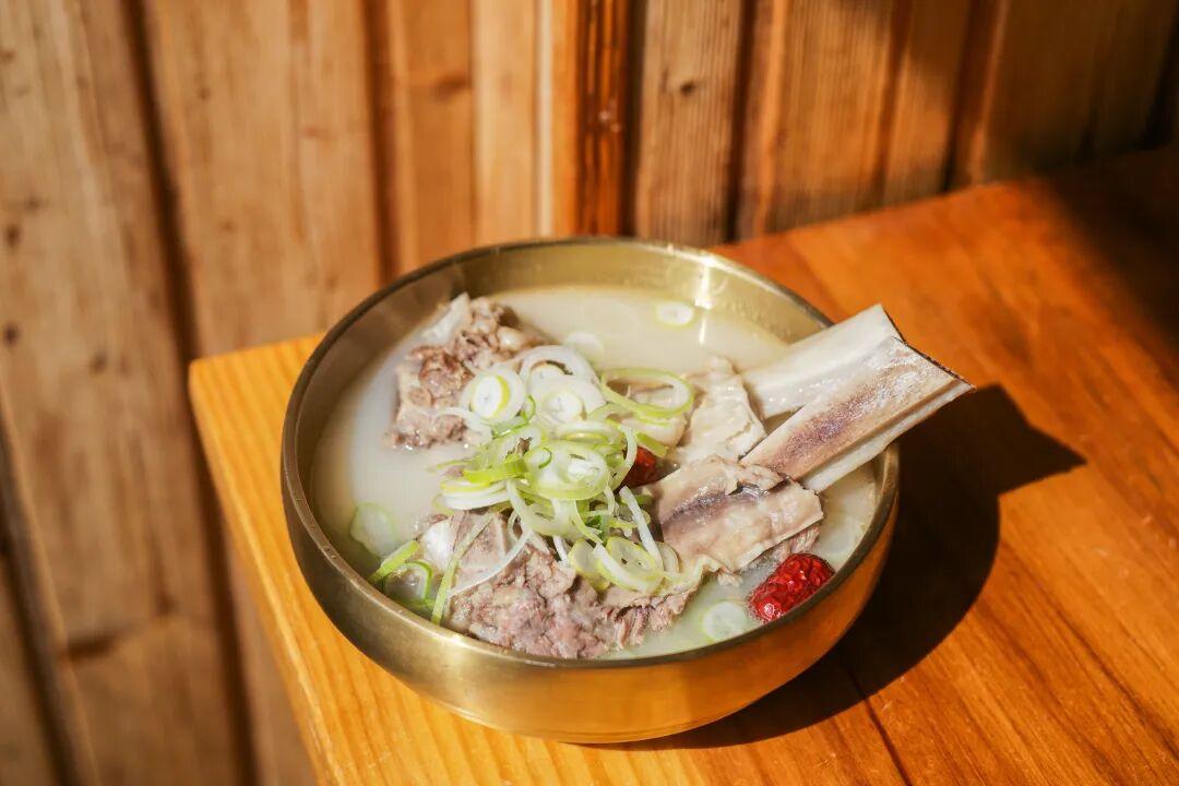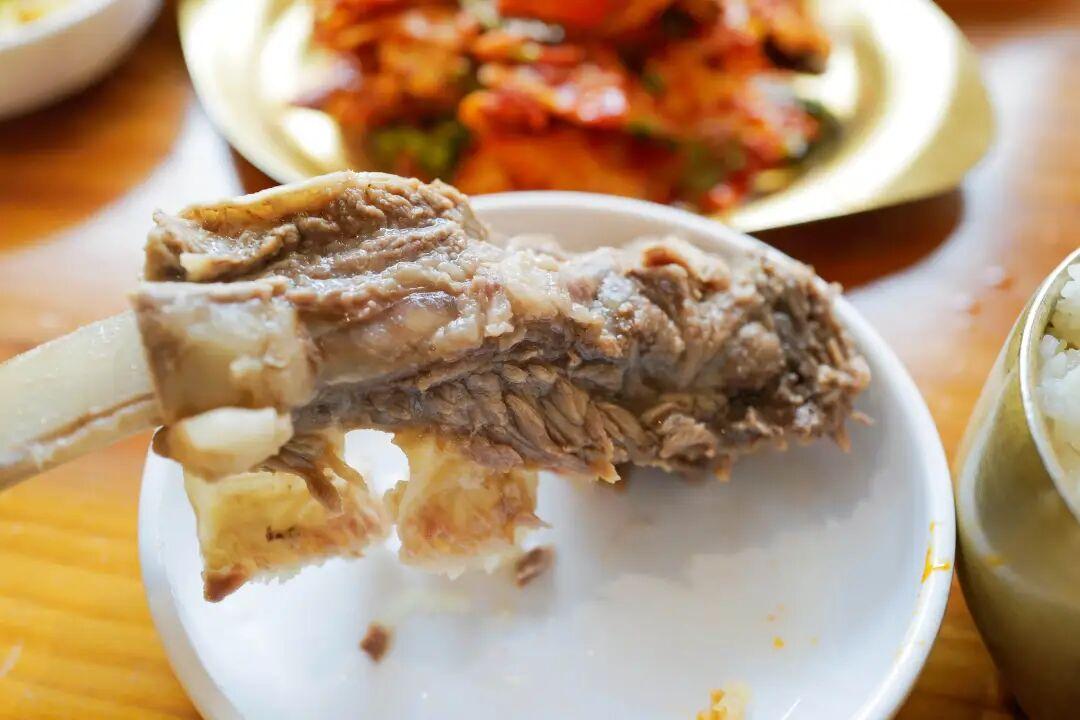 牛骨湯飯是這裏的招牌。乳白色的湯汁表面浮着一層薄薄的油花,舀一勺入口,滾燙中透着骨髓的鮮香與藥材的甘辛。燉得酥爛的牛骨肉,用筷子輕輕一撥便骨肉分離,肉質纖維吸飽了湯汁,入口即化。最後,熱湯配上白米飯和小菜,愉快收尾。
