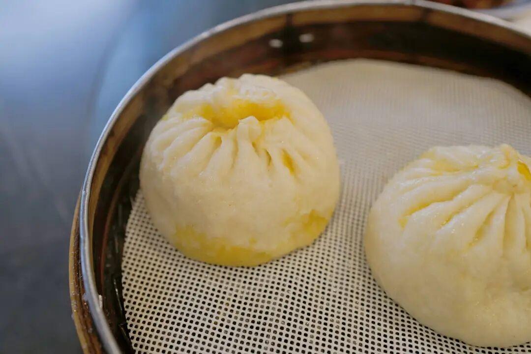 包子是發麪的,不是灌湯包,蒸好的包子已經透着金黃的蟹黃油,油潤的包子皮看着比肉餡更香。當然,肉餡也很美味,調味很剋制,不似無錫甜膩的做派,是恰到好處的鮮甜,完全不腥。