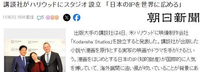 日本出版巨頭講談社今天宣佈,於美國好萊塢正式成立新工作室“Kodansha Studios”,主要工作就是講旗下知名動漫、小說等推出真人電影、電視劇等,推廣日本文化。