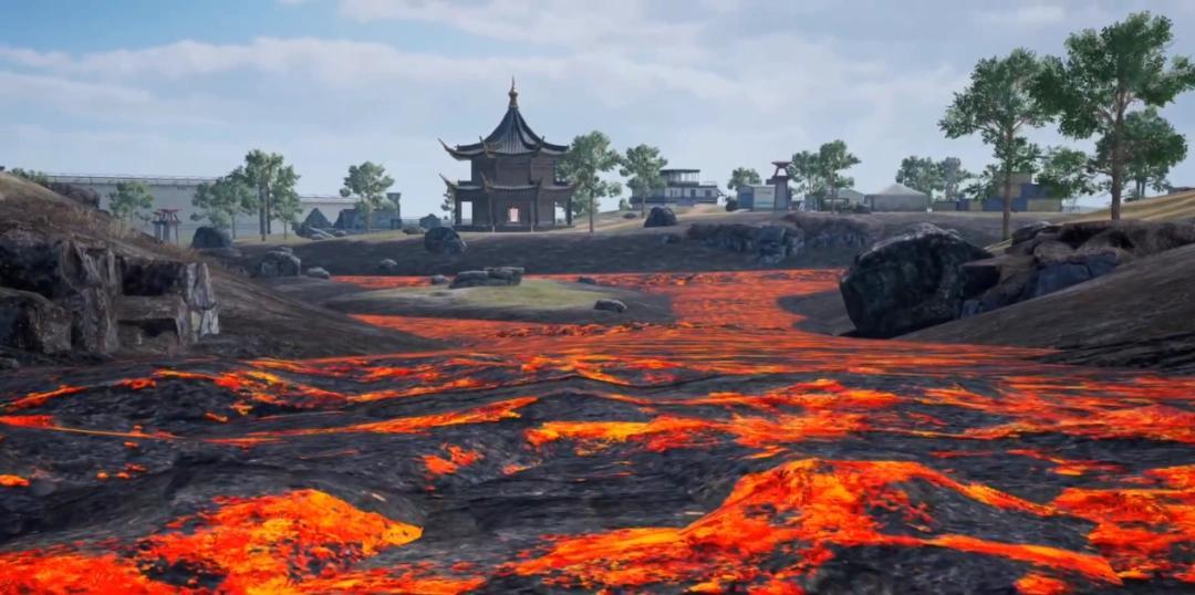 除了基礎區塊本身的變化,“怒兆火山”各個區塊之間的分隔設計,也從之前常見的河流,變成了契合“火山”主題元素的熔岩。如果不做準備就貿然進入熔岩區域,你很有可能會被它極高的傷害提前燙退場。