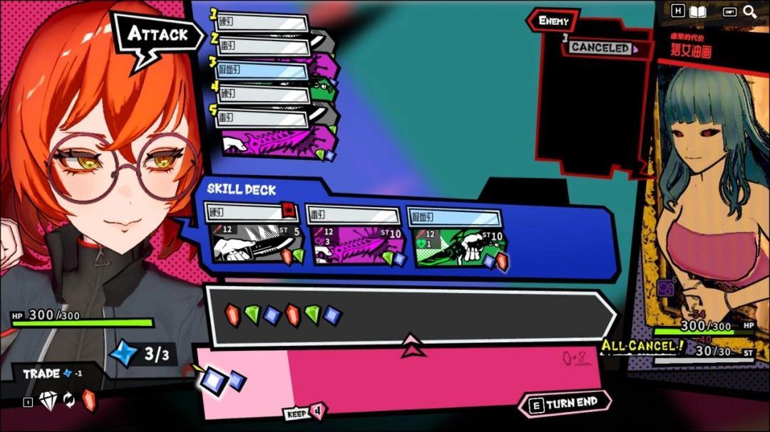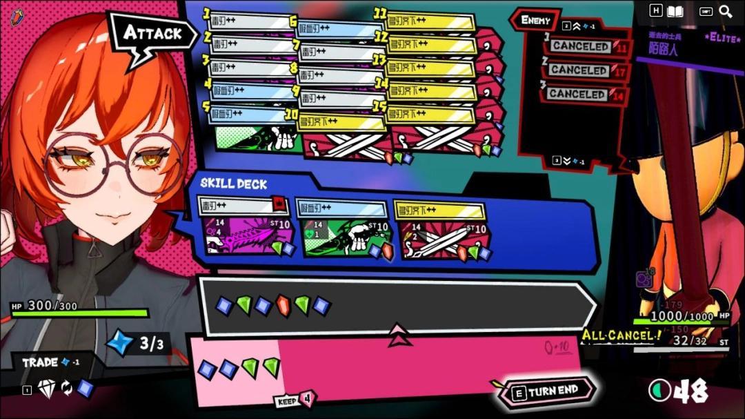 當然,隨機的寶石顏色不可能永遠如玩家的心意,出現手札事故是卡牌遊戲在所難免的窘境。但《第九聖詩》依然爲玩家提供了策略手段——通過消耗特殊的行動點數,玩家可以顛倒敵人的意圖順序,這令玩家在連段不足以完全封鎖敵人時,可以有目的性地去封鎖危險度更高的敵人招式。