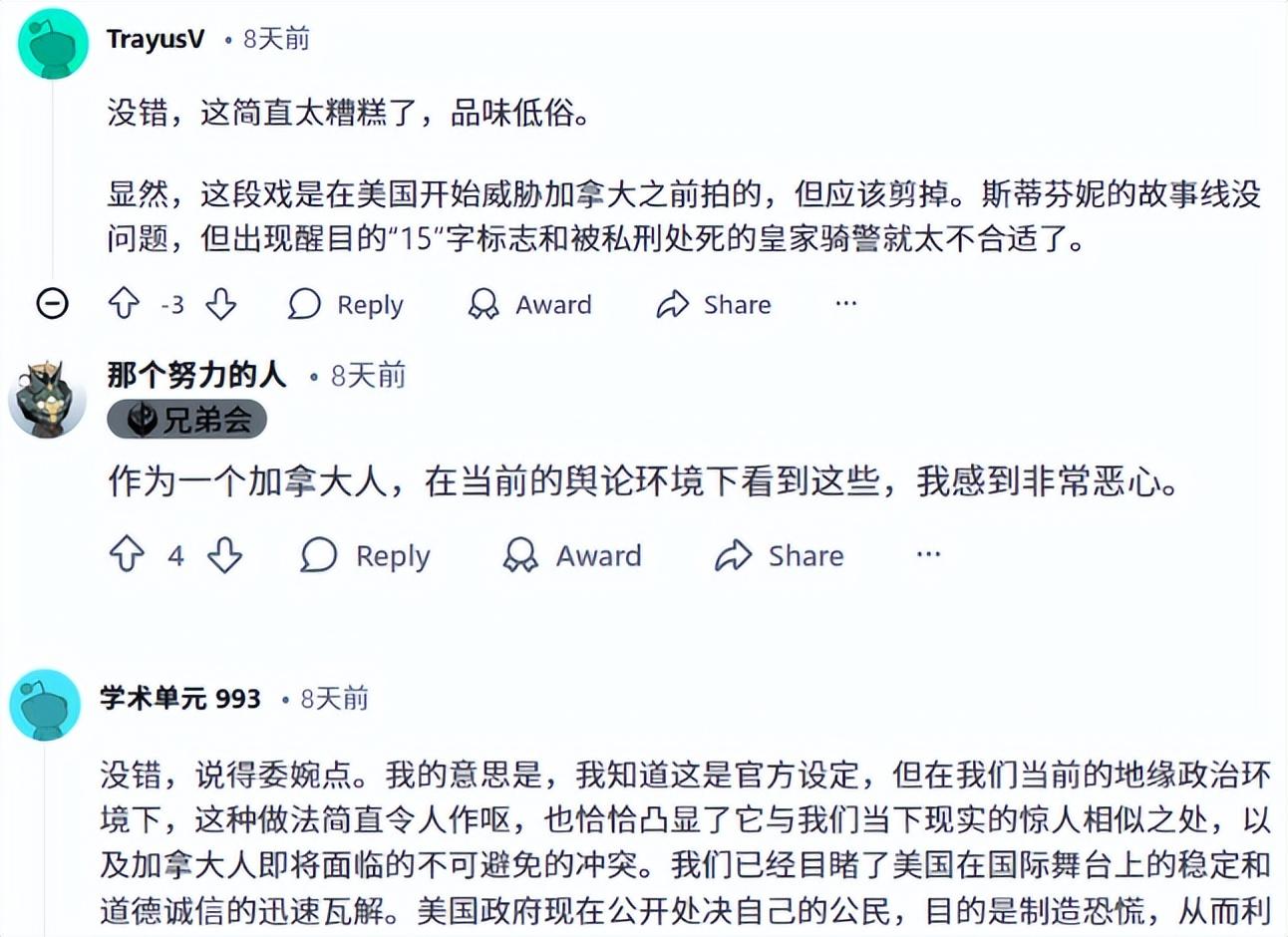 但離譜的是,帖子下的很多美國人認爲“艾伯塔省”的人,是主動對美國投懷送抱的。這無疑又讓加拿大人血壓飆升,並佩服“輻射系列的創作團隊”,是真的瞭解美帝。