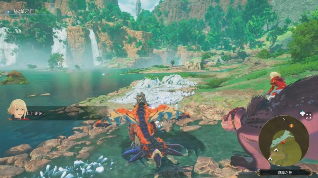 在這點上,本作品的地圖就和隨行獸們的騎行技能有着更強的綁定關係,以第一章中的亞茲拉爾王國爲例,作爲承擔了遊戲教學功能的首個舞臺,雄火龍“飛行”技能便足以幫助玩家掃蕩這裏的絕大多數區域,而到了第二章中的大瀑布地區,面對地形錯綜複雜的山道與峭壁,牙獵犬的“奔跑”和“跳躍”又成了不可或缺的技能,兩張地圖之間的探索體驗可以說是完全不同。