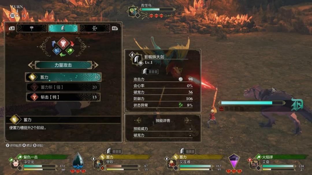 這聽上去可能沒有什麼大不了的,但其實在很大程度上改變了《怪物獵人物語3:命運雙龍》的決策深度和遊戲節奏——因爲技能在攻擊比重與功能性上的加強,玩家在設定行動策略時,不再需要一味拘泥於“三角剋制”與“騎乘”狀態間的循環,根據戰場情況的變化,正確的技能有時反而更容易打出帶有針對性的策略組合。比如,面對那些處於三角剋制關係外的攻擊,遊戲就更鼓勵玩家用控制敵我狀態來抵抗,有的技能會提升我方全體的迴避率,有的技能就更容易對部位或敵人狀態造成破壞。