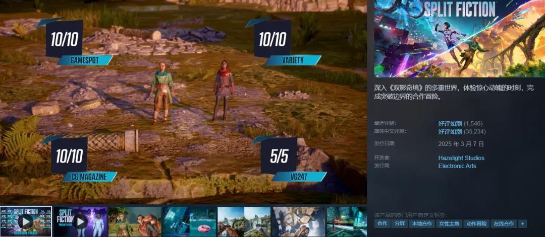 【短評】:雙人遊戲巔峯神作。二十多小時的互動電影,很多關卡非常驚豔,只能說太有想象力了,玩完像做了一場特別有意思的夢!只想說,沒有體驗雙影奇境的人生是會有遺憾的!