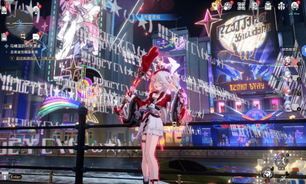 上個版本翁法羅斯我們扮演外鄉人,是參與遊戲角色的命運。而這個版本不同,一來“二相樂園”是老大姐姬子的故鄉,二來當地有以我們爲原型的漫畫《蒼天航路絨絨號》,因此,來到二維市就有粉絲“接送”,廣場是主角的巨幅海報,排面拉滿,等於把我們捧成了絕對明星。