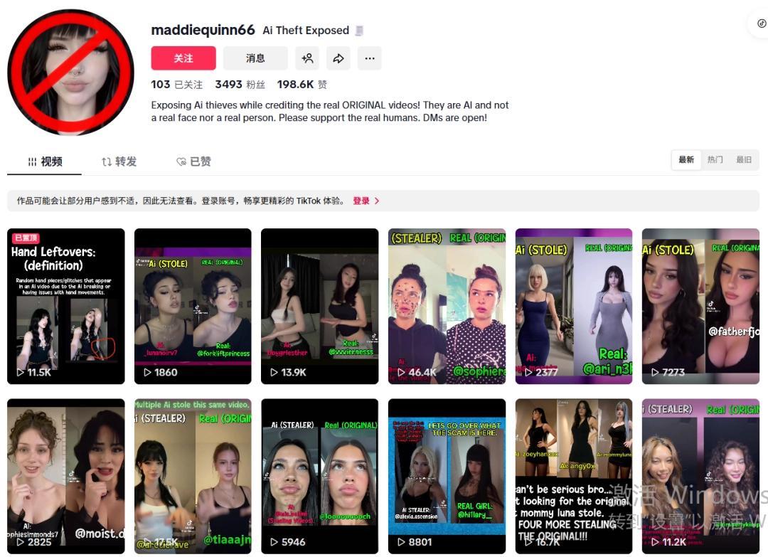 這些打假的大哥,他們的主頁儼然揭示了一條全新的互聯網賽道——即專門鑑別哪些賬號用AI盜用哪些博主的視頻,也表明當下的AI人換皮已經是一種現象,不是單獨個例。