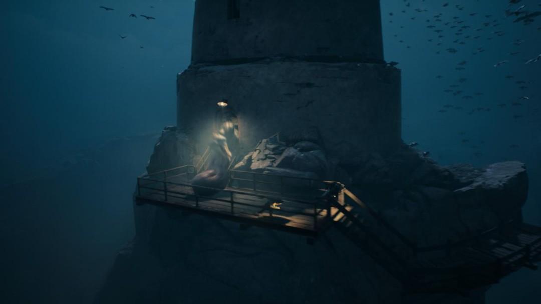但《生靈重塑》所做的事情卻截然相反,它選擇了一種更加超現實的手法,通過調整“世界邊際感”,從而達到煽動不安情緒的目的。舉個例子:在某處海岸邊,你找到了一個沿着巖體架設的天梯,但實際爬上後卻發現眼前的峭壁可能要比想象中來得更加漫無邊際,隨着鏡頭的拉遠,你才意識到自己在這個故事中的渺小——這個過程平靜得像是一種純粹的美學展示,也更容易讓觀衆產生那些沒有意義的想象:峭壁的上面到底是什麼?