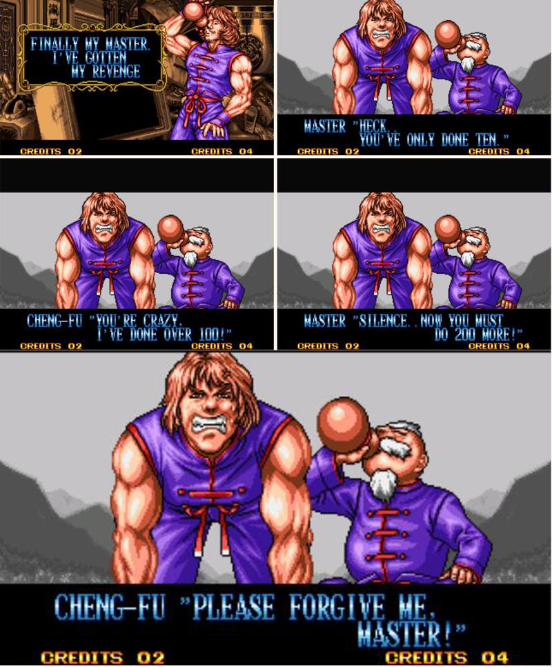 如今我們在對戰平臺上面,《雙截龍格鬥版》雖然人氣不如《拳皇》《街霸》那些主流遊戲,但我們依然可以看到很多高手在玩,而且各種套路和目押讓人眼花繚亂,觀賞性也是比較高的。只是實戰中幾乎看不到有人敢使用成福的架招,太冒險了。