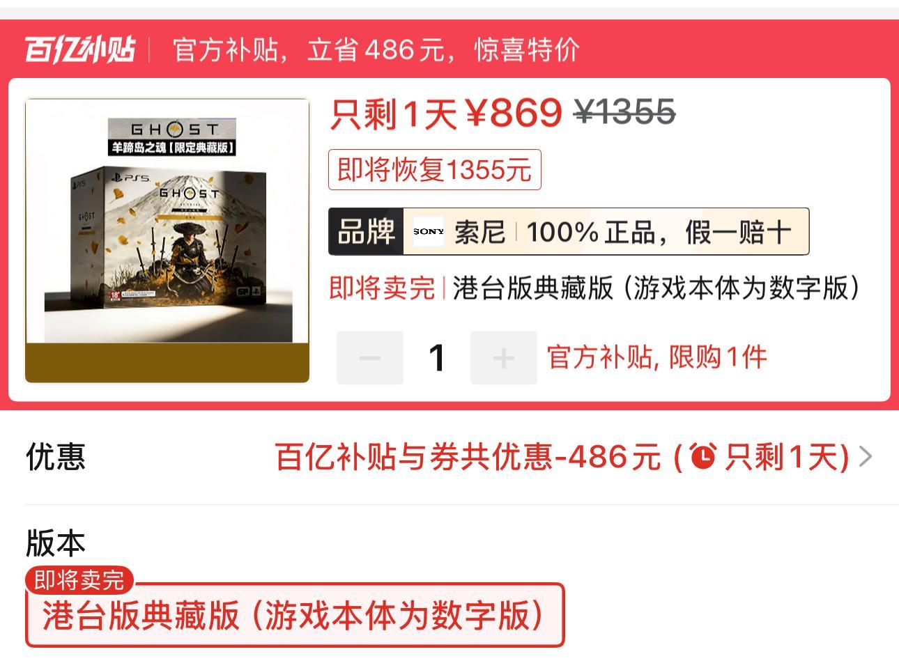 1.《羊蹄山之魂》PS5限定版869元全新包郵