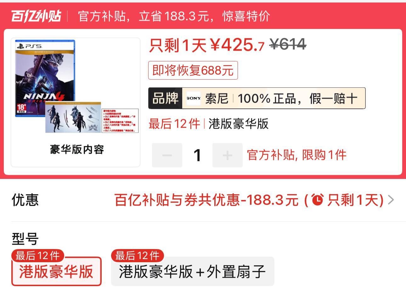 4.《忍者龍劍傳4》PS5豪華版425.7元全新包郵