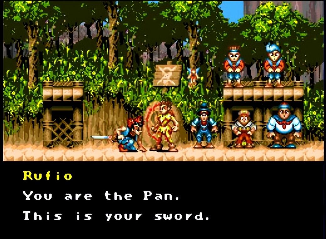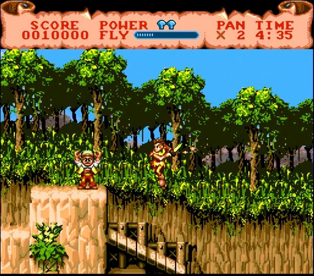 我們對比一下街機版和MD版本中的人物,你會發現人物設計幾乎一模一樣,只是畫風稍微有點不同而已。在《小飛俠》故事中,當年小飛俠彼得潘離開了夢幻島之後,羅菲歐就成爲了這裏的孩子王,多年來一直相安無事。