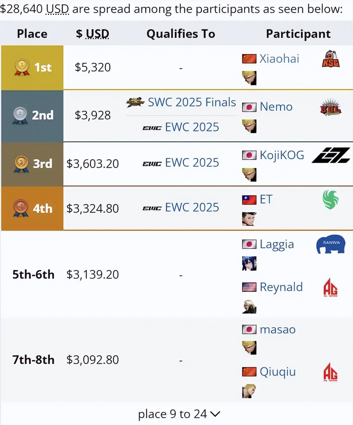 以小孩拿下首個“狼城”冠軍的綜合性格鬥賽事——美國CEO 2025作爲對比,即便將這項賽事包括“街霸”“狼城”“GGST”在內的總計全部十五個主項目獎金池全部相加,才堪堪達到SCS 2025的一半(75840美元,合約52萬元人民幣),而拿下“狼城”冠軍的小孩獲得的獎金爲5320美元,僅有SCS 2025“狼城”冠軍的八分之一……