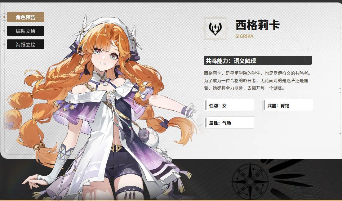 西格莉卡目前已經登場過,根據現有信息來看,她顯然不是一名普通的學生。作爲一位能解讀“羅伊符文”的共鳴者,西格莉卡立志要成爲一名優秀的“昭日者”,併爲此一直全力以赴。