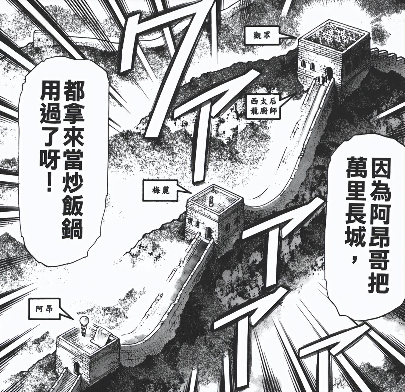 比如,在《真·中華小當家!》的後期劇情裏,反派角色“亞刊”可以點燃整條長江做飯。而劉昴星也不遑多讓,能把萬里長城作爲廚具,用陽光作爲能源烹飪料理。
