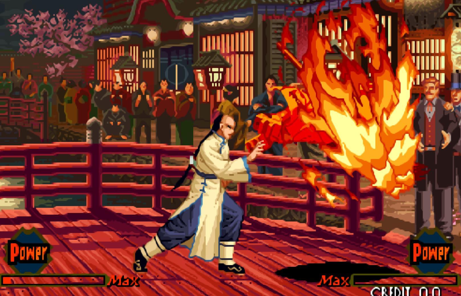 SNK這邊的相關人物就比較多了,早年遊戲廳有一款名爲《月華劍士》的遊戲。這遊戲質量不在《真侍魂》之下啊!當年人氣也是挺高的,其中出現了一位清朝角色李烈火。他的原型就是黃飛鴻。