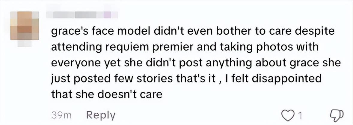 起初,是國外有一部分“生化危機”系列粉絲,發現Julia Pratt並沒有在自己的社交媒體賬號上發送有關《生化危機 安魂曲》相關內容後,認爲Julia Pratt對待遊戲過於冷漠:“Grace的臉模根本就不在乎,雖然她參加了遊戲的首發活動,還和大家合了影,但她完全沒有發任何關於Grace的內容,只是發了幾個快拍(限時動態)而已。對她這種漠不關心的態度,我感到很失望。”