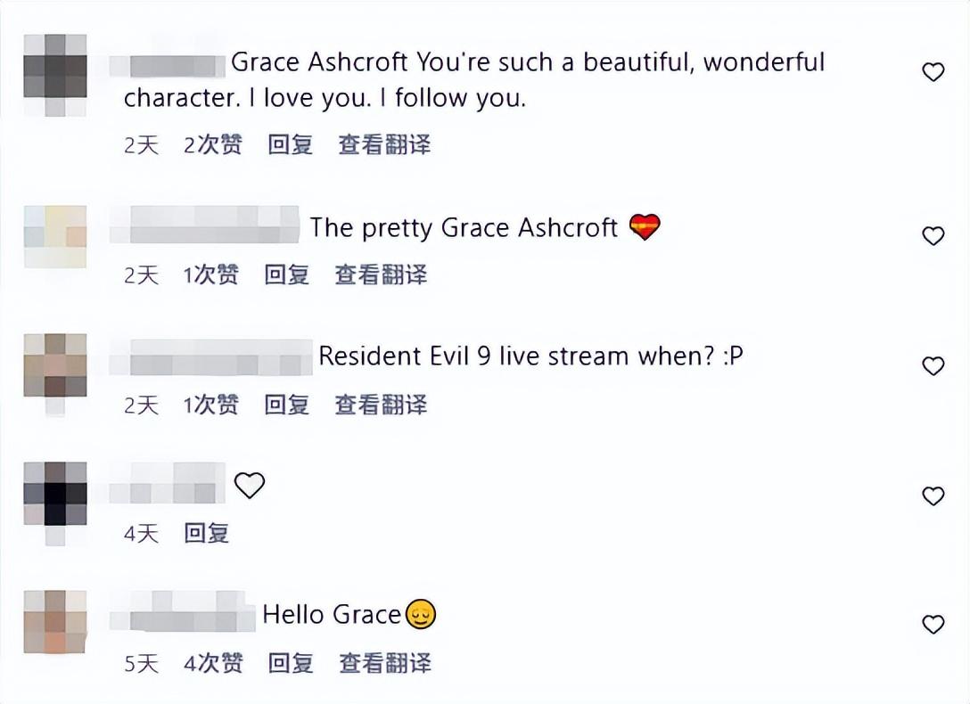 就像是追劇也要追演員本人,看番也要追聲優本人一樣,一大批格蕾絲粉絲湧入Julia Pratt的社交媒體賬號評論區——隨便翻翻,就能看到有人將其稱爲格蕾絲,並追問她何時打算直播《生化危機 安魂曲》。