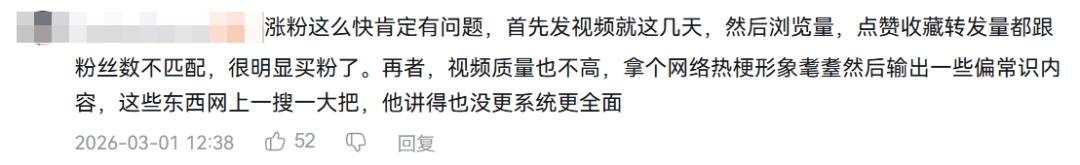 有人懷疑這個賬號的爆火存在水分,並表示視頻實際質量其實並不高,只不過是套用了耄耋這個熱梗形象,然後把各種常識總結到了一起,再披上一層光鮮亮麗的剪輯手法外衣而已。