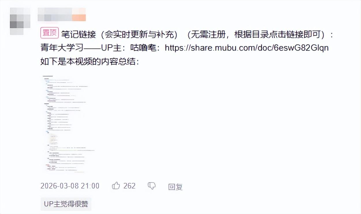 在這些視頻的評論區中,既會刷新出許多課代表,把視頻中的內容總結成文字版的筆記,供網友們時刻複習;
