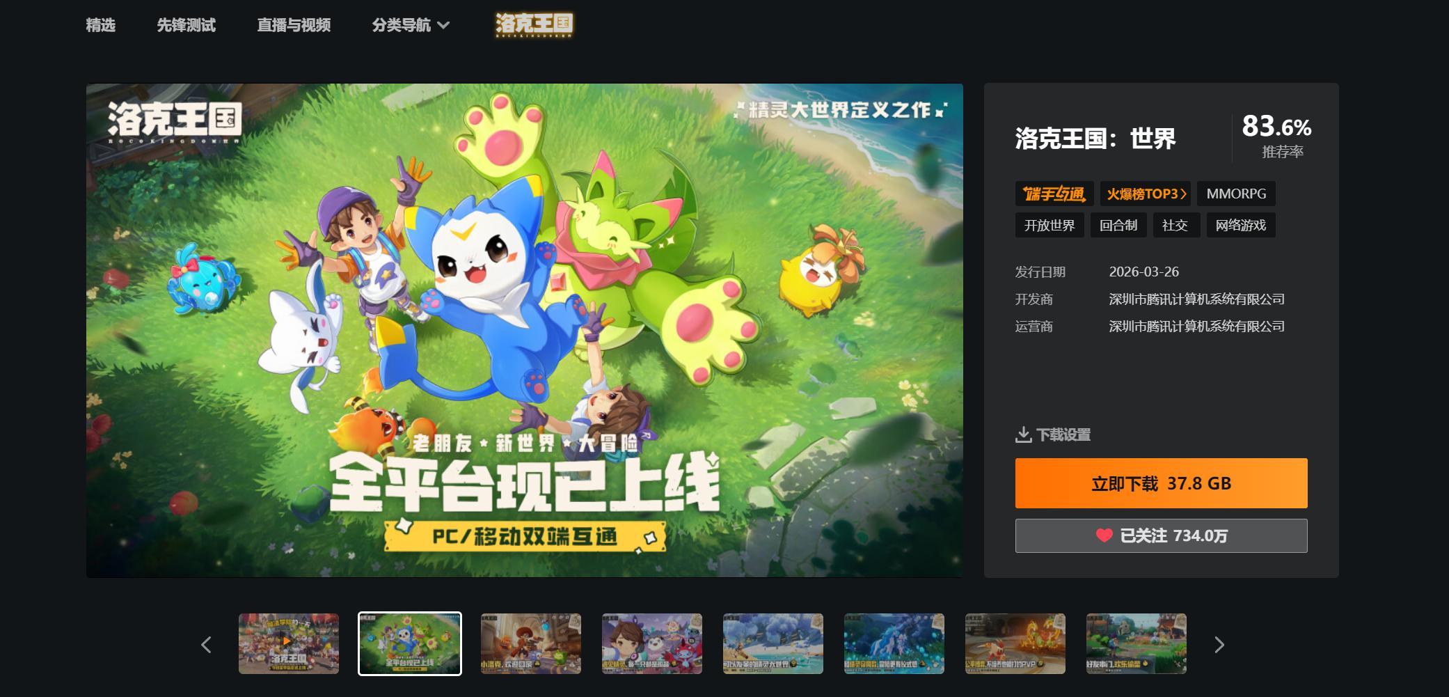 A:《洛克王國:世界》3月26日正式上線。準備在PC端入坑的玩家,可以通過WeGame完成下載、領取布瓜蝌精靈果實,進遊戲內暢玩體驗。