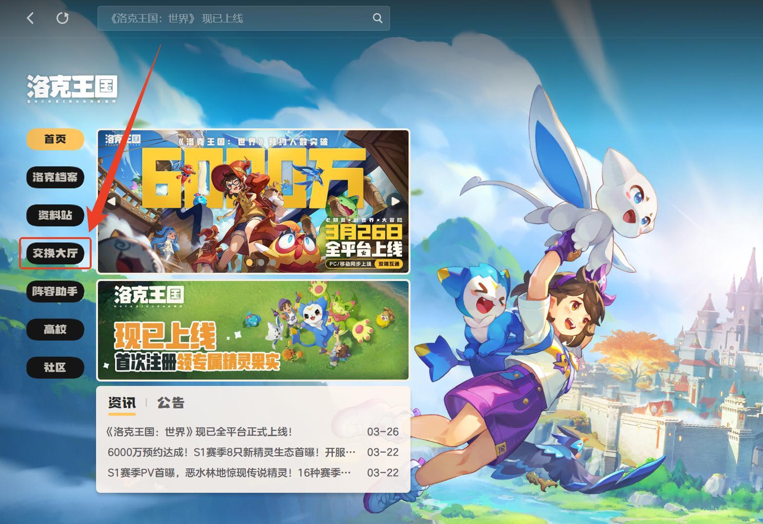 打開WeGame客戶端,在頂部搜索欄輸入《洛克王國:世界》,進入遊戲專屬啓動頁面,在頁面功能欄中找到交換大廳tab,點擊即可進入功能頁面,實時查看其他玩家發佈的交換帖子。