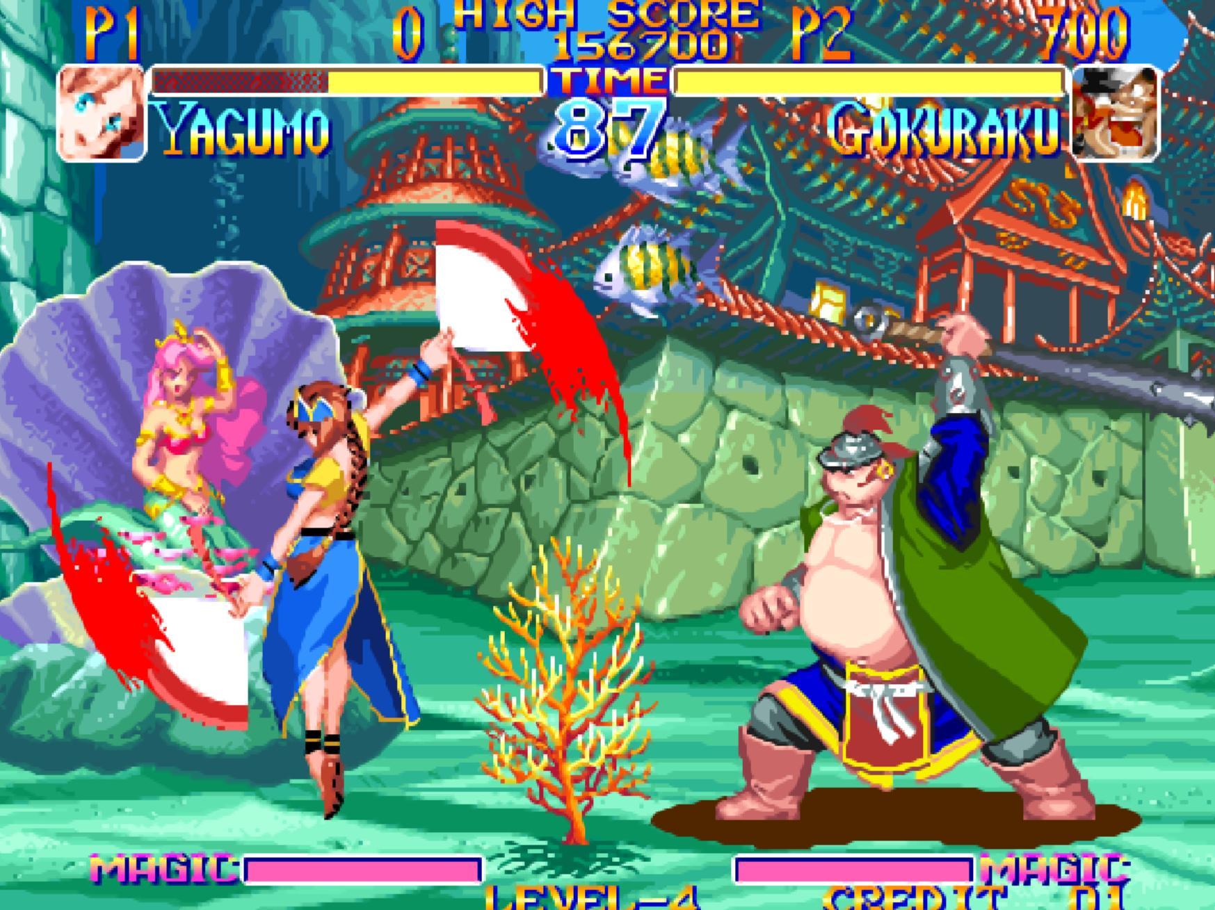 遊戲中的女性角色比較少,范小姐和郎小姐則是最早的格鬥遊戲女郎,她們都是有真功夫的啊!范小姐善於使用扇子作爲飛行道具,而郎小姐則使用梅花鏢。