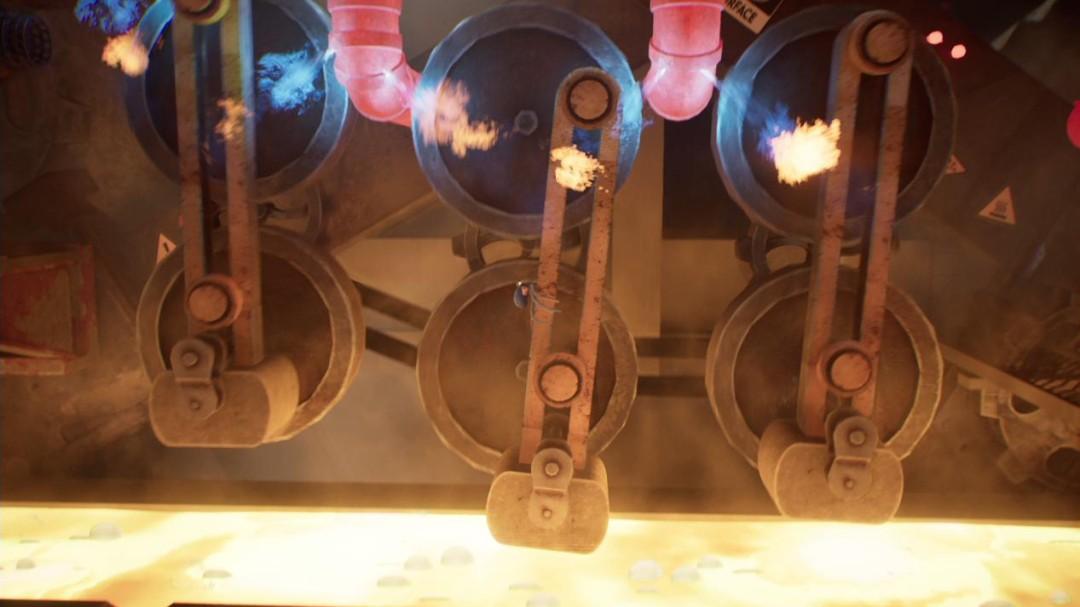 更可惜的是,因爲既不想把遊戲做得太難,又缺乏跳臺遊戲設計經驗,使得遊戲在攻略核心上,無限傾向於反覆的摸索——也就是試錯。陌生的跳躍手感要依靠試錯來習慣,跳臺的構造要依靠試錯背板,就連時機的掌握也要通過試錯來得出,儘管遊戲並沒有設置任何懲罰機制,但這種反覆的死亡過程,還是逐漸積累出了一種與遊戲詼諧風格並不匹配的挫敗感,破壞了遊戲在敘事和演出上的流暢感。當製作人員名單開始播放時,我早已經數不清自己一共死了多少次,這樣的體驗放在一款2D橫版動作解謎遊戲中,還真不算多見。