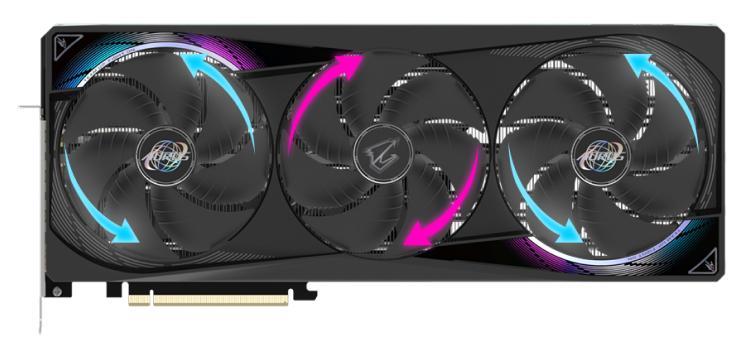 顯卡的外觀設計依舊走的是簡約酷炫的電競風格,正面的黑色面板搭配斜切線條處理,彰顯了AORUS系列純正的電競血統,裝飾的漸變色條紋和點亮後三個風扇周圍的RGB炫彩光輪,則讓裝機後整張顯卡的顏值進一步得到提升。