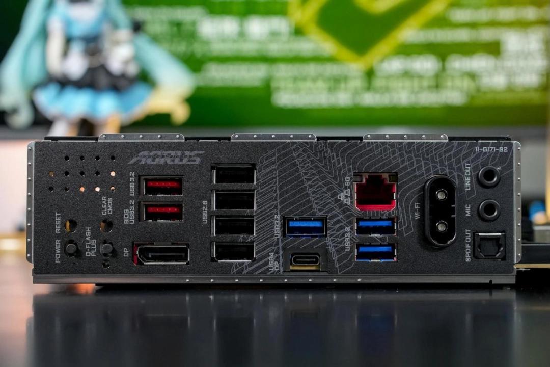 這塊主板的I/O區域也有不少亮點。首先是全新設計的通風口區域,大幅提升散熱效率,最高可實現7℃降溫。其下方分別是供電,重啓、Q-Flash Plus,清除CMOS四個後窗簡易按鈕,幫助玩家便捷完成故障診斷。接口方面,這塊主板配備了4個黑色USB 2.0接口,3個藍色USB 3.2 Gen1接口、2個紅色USB 3.2 Gen 2 Type-A接口,以及一個全功能的USB4 Type-C接口。值得一提的是,這個USB4 Type-C接口具備高達40 Gbp的傳輸速率。具備廣泛兼容性、高效充電能力及超高清視頻輸出功能。除此之外,這款主板上還配備了一個全尺寸PD接口、1個RJ-45網線接口(支持5Gbps帶寬)、1個數字光纖輸出接口、2個3.5mm音頻接口,以及2個支持Wi-Fi 7的天線接口(主板預裝Wi-Fi 7旺卡且自帶驅動),配合主板包裝內的定向超高增益天線,可實現即插即用,優化Wi-Fi信號傳輸。