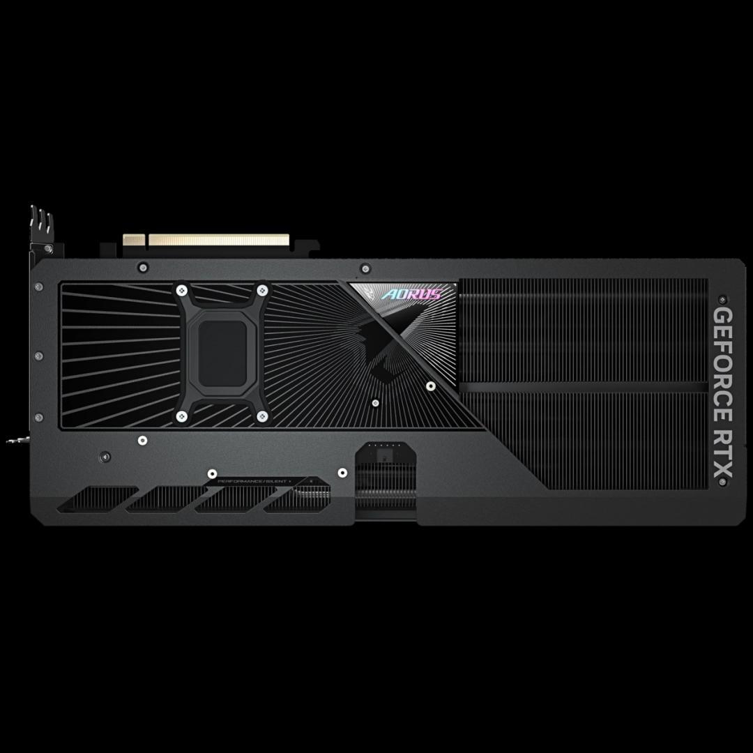 顯卡背面配備了大面積的金屬背板,增強結構穩定性的同時,中央的“AORUS”LOGO和超級雕圖案,也讓整張顯卡的外觀更具辨識度。