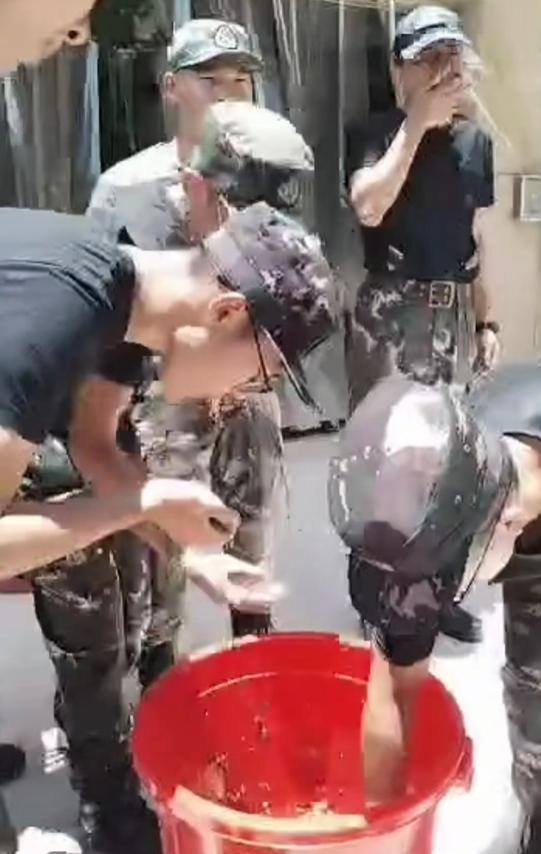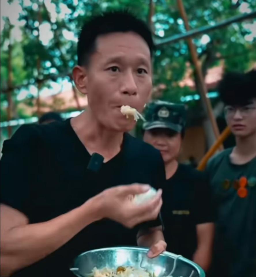 像這種公式化喫泔水,幾乎每次開營都得來上那麼一遭,教官們炫一口,幾個喊口號上了頭的大孩子衝上來猛炫幾口,歲數小的孩子們捱了訓,在底下淚眼巴巴地看着,最後一羣人再一起呼喊“教官別喫了”“誰知盤中餐,粒粒皆辛苦”……