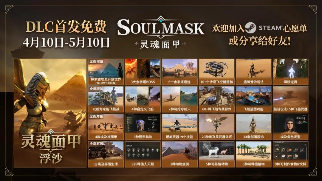 對於新玩家而言,《靈魂面甲》的族人和領地管理,以及傳統生存沙盒遊戲資源採集與科技攀升的玩法已經足夠飽滿,那麼對於那些已經嘗過肉味,知道《靈魂面甲》有多好玩的老酋長們來說,《靈魂面甲:浮沙》DLC,有什麼值得期待的?