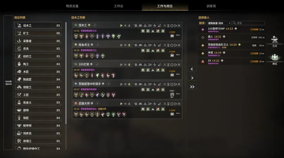 而如果你是那種喜歡面對面管理所有族人的酋長,這套綜合管理系統也非常好用,你可以直接調控族人當下和未來的工作崗位安排,解放後續的管理壓力——當然,這些選項都可以在綜合管理界面遠程調控。