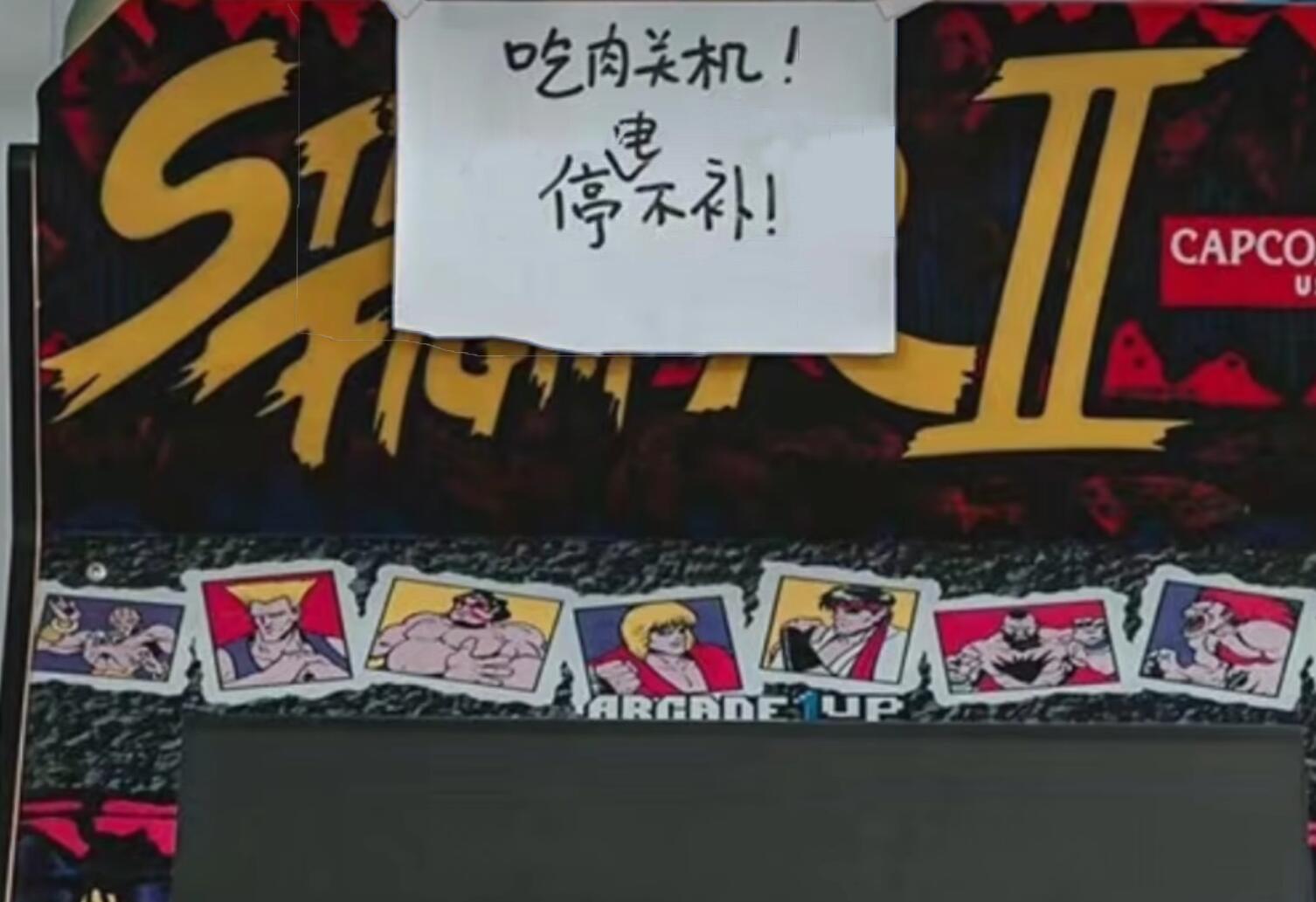 玩《三國志》的時候,在喫肉關卡只要有人將搖桿和按鍵弄得啪啪響就會被厲聲呵斥,老闆甚至在機器上面貼上了“禁止喫肉”的標籤。