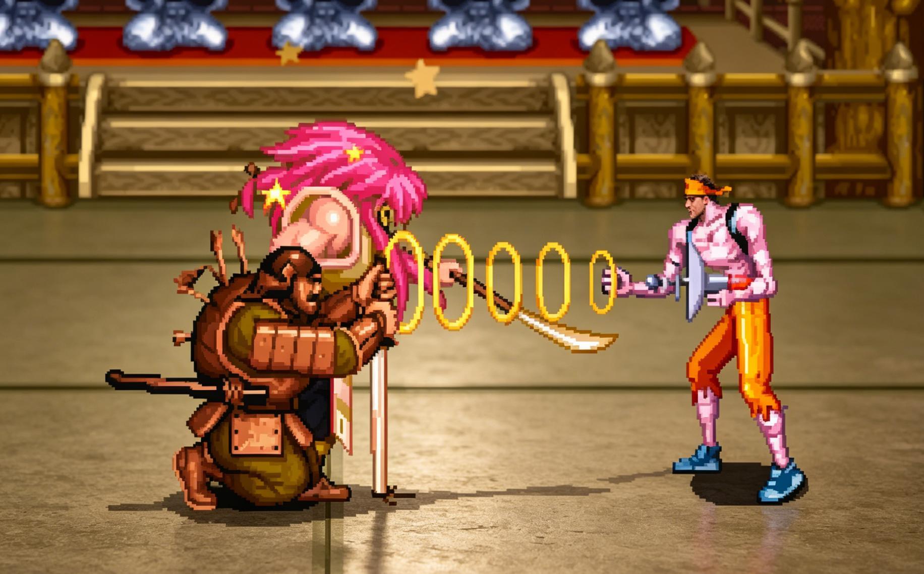 《怒之鐵拳》當年爲什麼能夠成爲神作呢?就是因爲這款遊戲打破了清版過關遊戲的瓶頸,創新出了更多的玩法,甚至就連武器都玩出了各種花樣。每個人物見到武器之後使用出來的攻擊方式和技能完全不同的了
