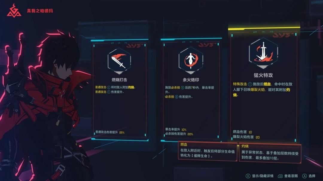 我花了不少時間去分辨升級祝福、升級模組、祝福選擇、局內外資源各自對應的解鎖項。這些生造詞不像神話體系那樣擁有廣泛共識,需要玩家慢慢適應——如果說玩家看到“宙斯”就能聯想到閃電,那麼“真我之帕德瑪”又與什麼強關聯,分支選項提供的燃血又是什麼特性,燃血提供的緩釋生命又會是什麼效果?