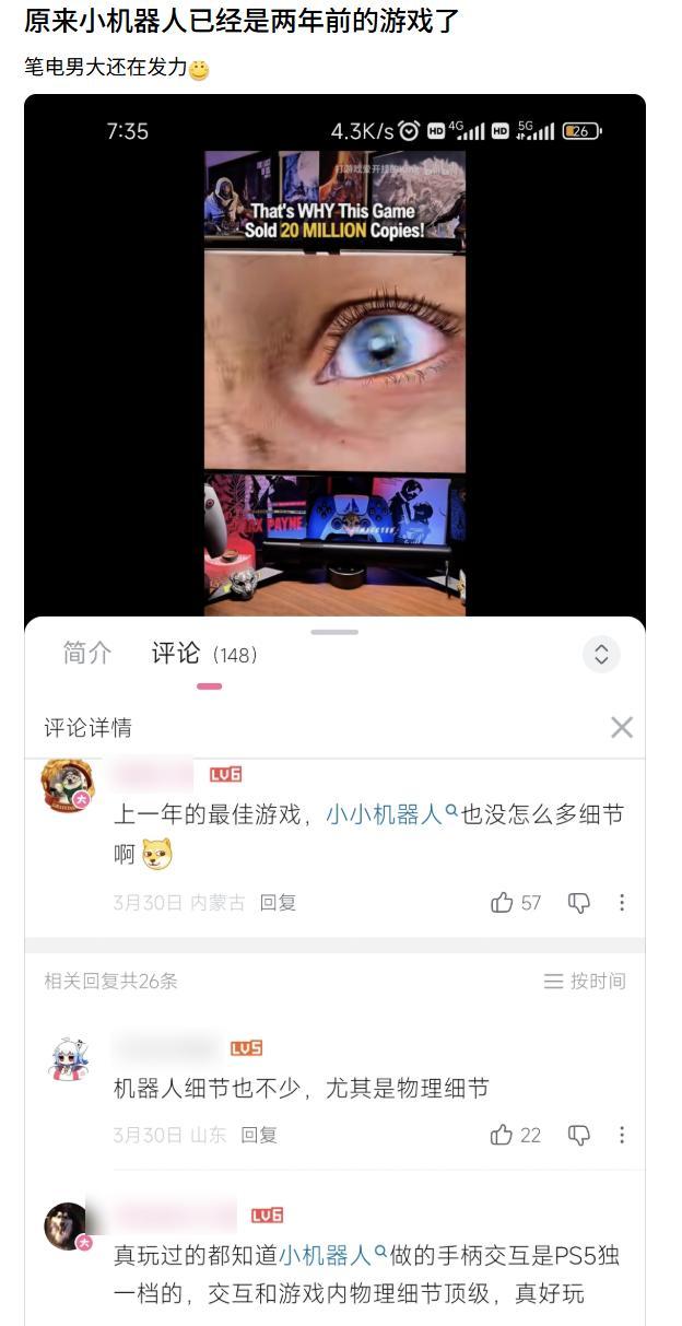當一個PlayStation 5玩家看到TGA大獎2024年度遊戲《宇宙機器人》在小黑盒上被怒刷3.0分差評,無數雲玩家連遊戲都沒摸過甚至沒雲過,就烏泱泱過來差評辱罵,張嘴“不如黑猴”、閉嘴“4399”時,就可以來句“筆電男大鬧麻了,遊戲是不玩的,設備是沒有的,差評是跟風的,話術是偷來的”。