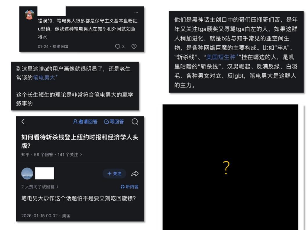 於是,在這些領域的諸多爆典言論,也被某些羣體“順理成章”地扣在了筆電男大的頭上。